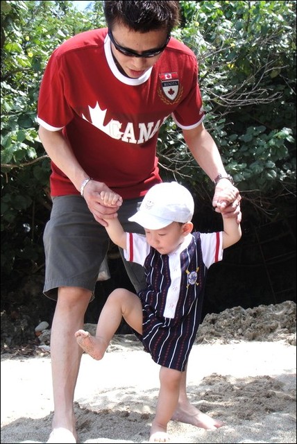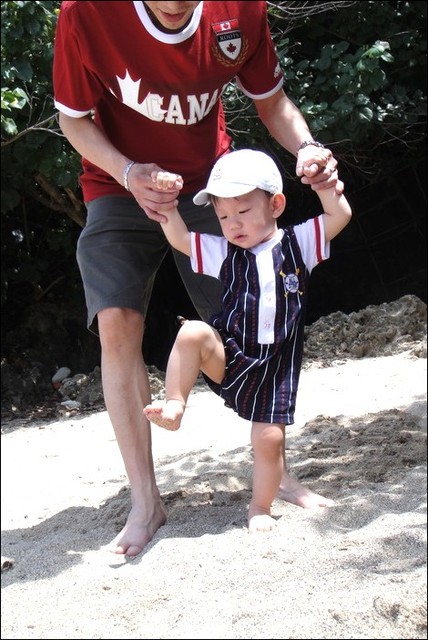 瞧小波吉抓的可緊的咧,深怕又被丟下去踩沙子~~