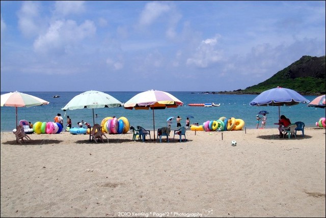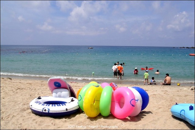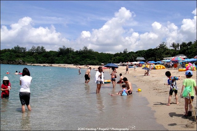 好多人喔~已經開始在玩水了,這邊也有賣三合一的水上活動,香蕉船、浮潛,不曉得有沒有水上摩托車,可能沒有吧,也可以自已玩沙灘排球、海洋獨木舟等