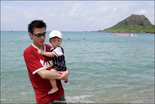 小人家一直趴在我身上睡我哪兒也玩不了,後來他睡了一會兒,我就把小人丟給蓋先生,然後自已下去大海潚一下,好開心喔,結果小人一下子就起來了,真會認人體肉床,換一張床就不睡了~