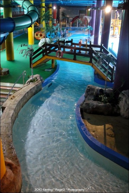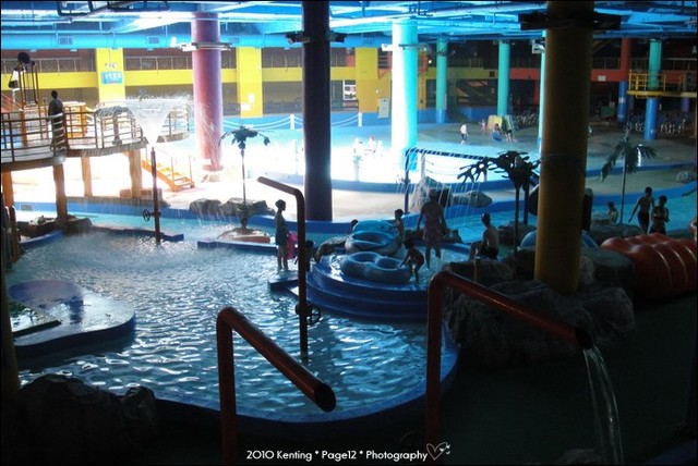 這裡聽說是3,000坪還滿多東西的,有三四條滑水道,漂漂河及類似大海潚的人工浪,我們帶小波吉去飄飄河,結果他小人家被淋下來的水給嚇的大哭,只好抱他上岸安撫他,結果他小人家原來是想睡覺了,只好三個人穿著泳衣陪他睡,我們邊躺著做半日光浴,超搞笑的,一歲的小人還是不適合跑那麼遠來玩,不然他小人家說睡就睡,我們玩啥