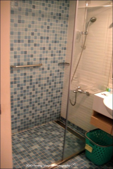 小而美的淋浴間,這浴室很新,用起來就感覺很不錯,雖然小小的,門拉開就是洗手台,左邊是淋浴間,右邊則是馬桶