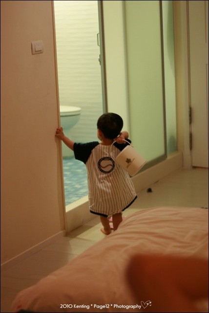 小波吉拿著冰桶在等爸爸出來,一起喝個夠,噗,沒有啦,他小人家在玩冰桶~沒想到夏都還有準備冰桶喔,應該來一手對喝的~