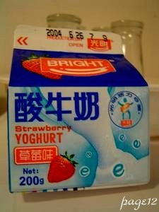 酸牛奶,大家應該猜的出來,就優酪乳啊,草莓口味的,還不錯,不過我們只會叫酸掉的牛奶為酸牛奶,這種品名,好像會讓人不太想買吧