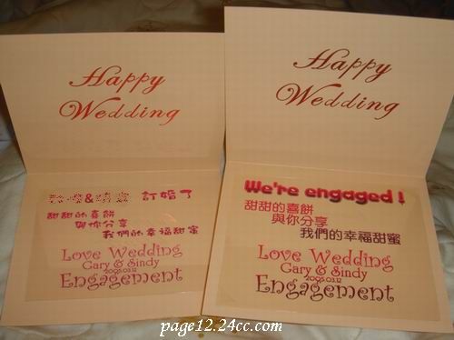 今晚都在弄我的喜卡,就是喜餅上的小卡,詩特麗有送小卡,但內文要自已印,於是呢,我就用投影片製作出,很溫馨可愛的喜卡囉,終於加工完成,明天喜餅送來我就要忙著裝袋及放喜卡
