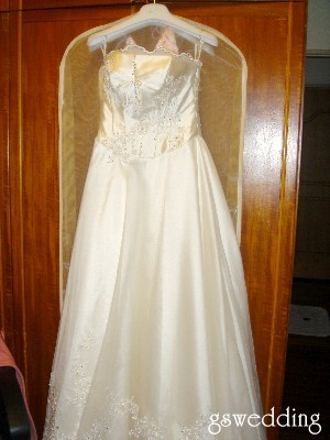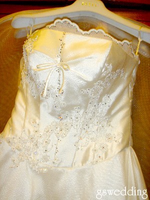 AM01:30婚禮的前一天,我沒有失眠,其實我很累,一樣像平常被豬附身一樣好睡,望著掛在一旁的白紗,胸前及裙擺都有閃亮的水晶,好美,夢想中的白紗就在我眼前了,小女孩不都在等這一天嗎,我真的要結婚了,好快喔,應該沒有忘記什麼吧,嗯,很放心的睡去....