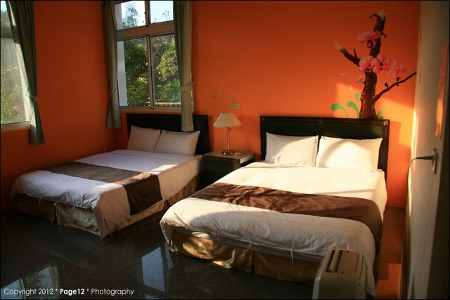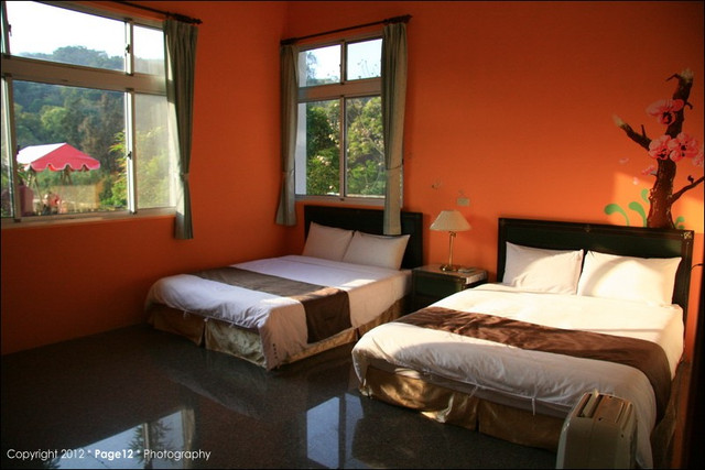 三樓都是木屋頂的房型,這間和我們住的禾之宿一樣是二張雙人床,只是擺設不同,我們住的多了和式,這個屬於洋式的