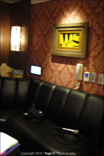 我們的包廂終於到了,裡面還滿新的,有分有廁所以沒廁所的包廂,我們的有廁所,還滿大的,可以坐十幾個人,有三隻麥克風,一隻是無線的,還有投影燈在地下,還有轉轉燈在上面,HIGH 歌的時侯可以打開,除了一個大螢幕點歌之外,牆上有二個小螢幕也可以點歌,結果都變成三寶弟的卡歌鍵,拿來亂按,也有搖控器,不過他的功能不是很好用,很多歌不會找,但是歌曲和錢櫃大同小異吧,我也不知道,宅媽也很久沒出來走跳了,新歌都不會唱