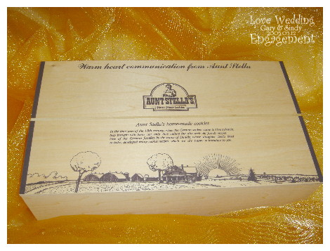 美美的木盒,上面有印著鄉村的景色及AUNT STELL的LOGO
