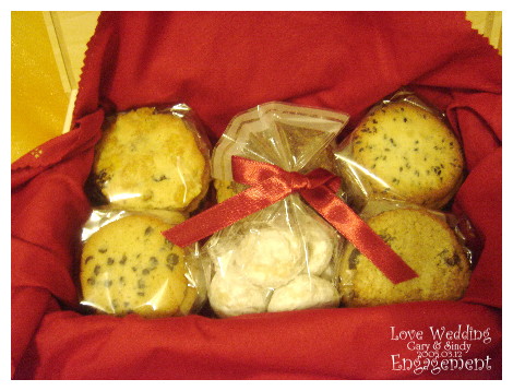 拆開蝴蝶結緞帶,裡面共有五包精緻的手工餅乾,要吃的時侯才拆,不會受潮