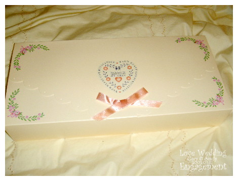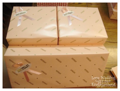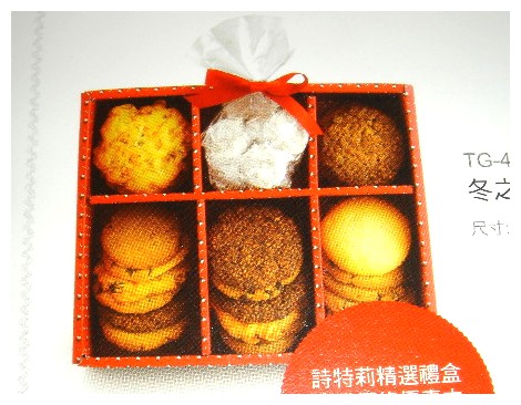 另外詩特麗的餅的盒子是依照季節會有不同,像我是在三月結婚的,而二月是過年,所以他有紅色的,三月本來換色了,我有先訂所以有保留,紅色很喜氣喔,夏天呢,他就是藍色的,很清爽,聖誕節那陣子是綠色就比較不那麼好看了
