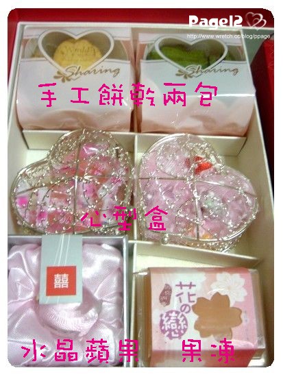 喜餅打開的樣子,左邊是餅乾糖果,右邊是時光寶盒