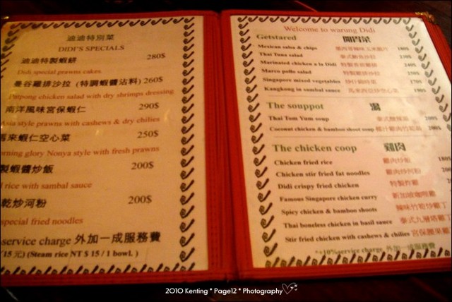 可愛的菜單封面~看起來是依照新店的風格畫的~低消每人200 外加10%服務費