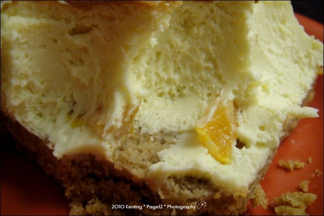 好綿蜜喔,我用湯匙挖著吃,底下還有一小塊碎碎的水蜜桃果肉~