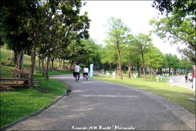 是的,爸比本來就愛騎車,所以又帶我來了,今天天氣滿好的,出太陽,因為羅東運動公園有一堆遊攬車,所以寶寶車都被租光了,所以我們跑來了冬山河親水公園沒關系呀,地方更大