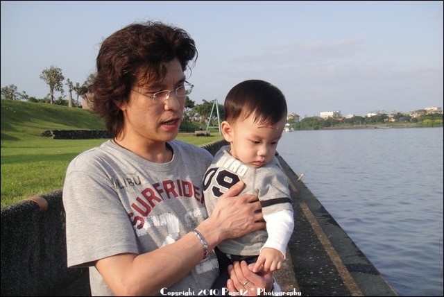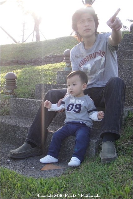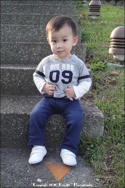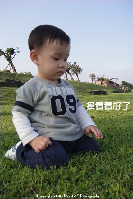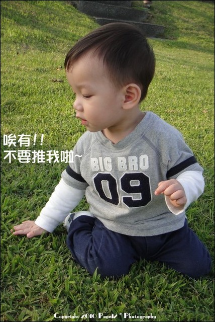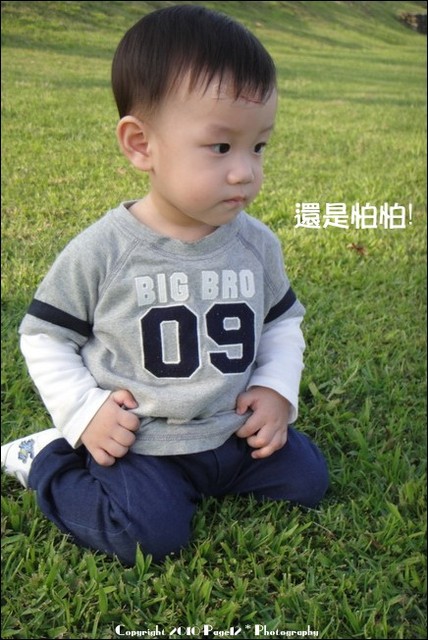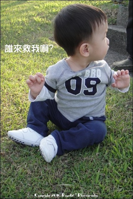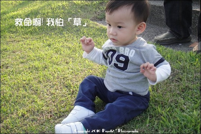本來讓說他在草地玩比較安全~石階危險,結果沒想到他兩手投降