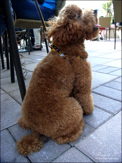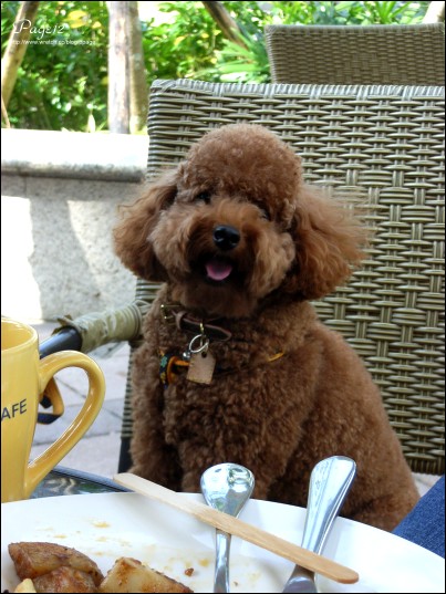 本來服務生要我們不要坐外面的,因為上次風太大,結果整個桌子倒掉,盤子割傷了客人,聽起來好嚇人喔,我們會小心注意的,但狗狗應該比較適合在外面吧