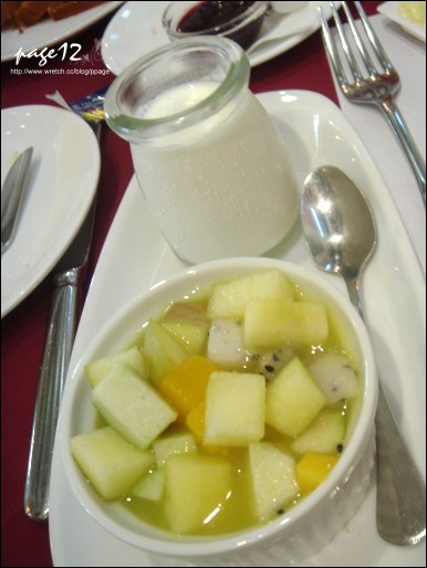 新鮮水果沙拉滿滿普通的,有蘋果、水蜜桃、哈蜜瓜、火龍果,還有加一點果汁的感覺