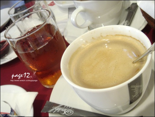 我選了咖啡,咖啡就是很普通的美式咖啡,滿濃的,比NY BAGEL的好喝,但很苦,套餐裡的蘋果汁是不能換成別種果汁的喔