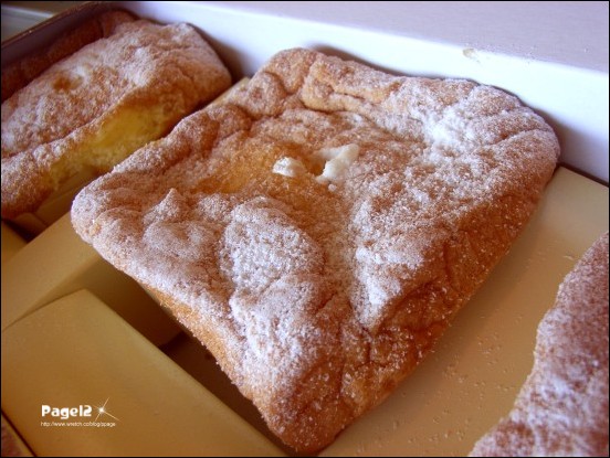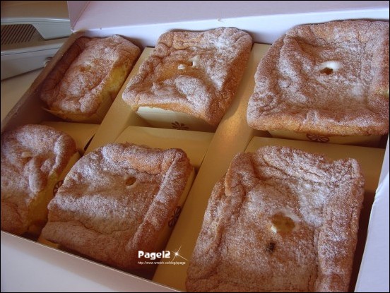 一盒六顆$130,最近漲十元,原本賣$120,他就是一個一個的海綿蛋糕,中間有一個洞其實是他擠鮮奶油進去的,上面還有撒很多糖粉