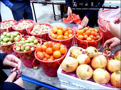 蘇州有滿多水果長的和台灣不太一樣,像這個石榴就是我第一次吃,台灣也有賣的只是比較貴,這邊大概一斤3元