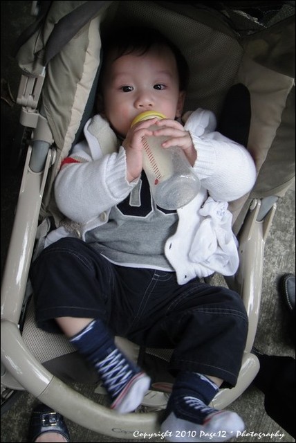 中途還有在推車上喝奶奶自已拿著喝,但只喝了三分之二就不喝了因為想玩