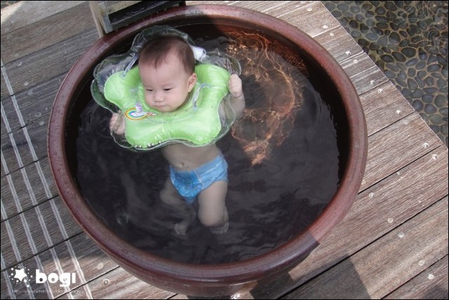 礁溪老爺的個人「碗公池」真棒,一個碗公一個人,小波吉在裡面好開心啊