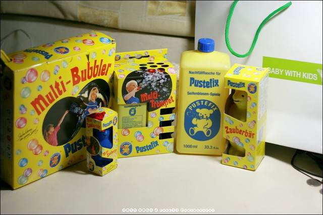 小波吉身上背的是德國 Pustefix Mini magic bubble bear 迷你魔力泡泡熊