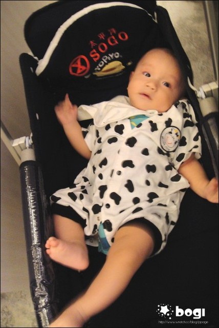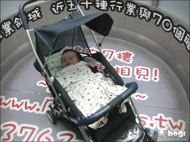 這個是小波吉四個月,SOGO 復興館BR4的推車,因為可能還小,所以提供的是可以躺平的黃色小鴨推車,還滿大台的,躺在裡面很舒適