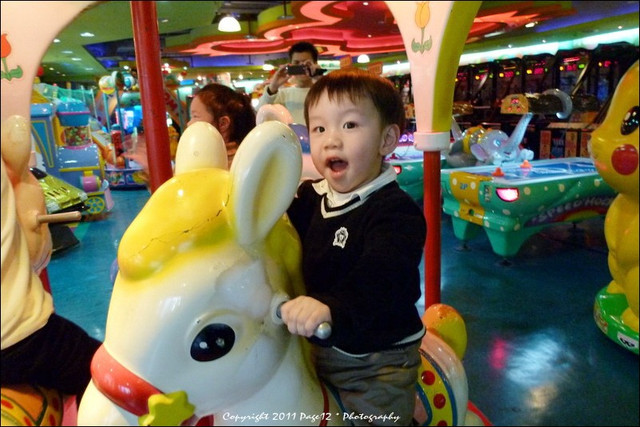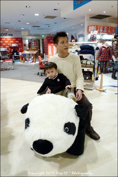 5樓路上都有這種貓熊及狗狗、大象,湯姆熊換代幣之後就可以坐啦,一定要大人陪同,哈,我和蓋先生各陪小波吉坐了一遍