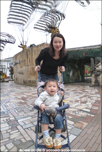 有下面這台推車免費借,要壓證件,陽春版的不太好推,但還ok啦,裡面有個大池塘,裡面好多魚喔,還有假天鵝~~,這有賣魚飼料10元喔,小波吉餵的超開心的,小朋友都好愛餵魚喔