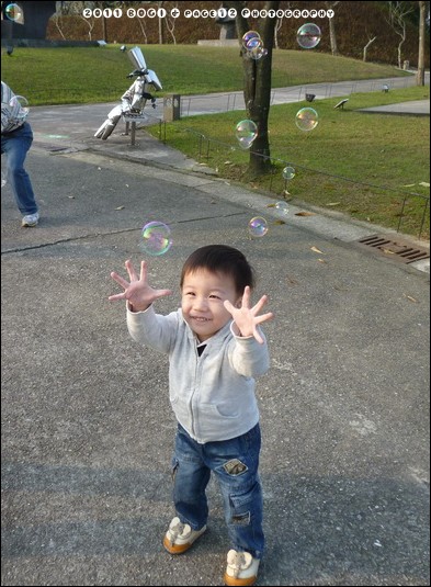 後來又拿出魔力泡泡熊出來拍照,他的這個臉好好笑啊,手更好笑,好像青蛙喔,五指怎麼張那麼開,哈