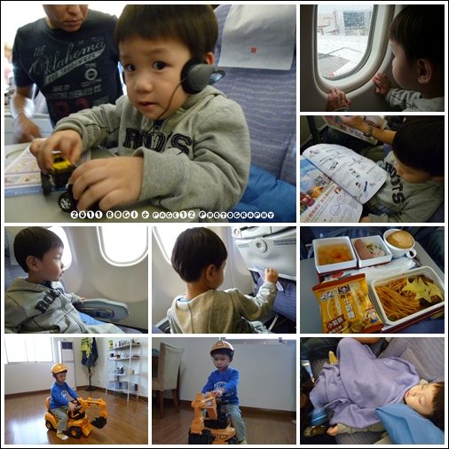 超過二歲的小波吉已經有自已的位子,還有兒童餐,他還是一樣,上機睡覺下機尿尿