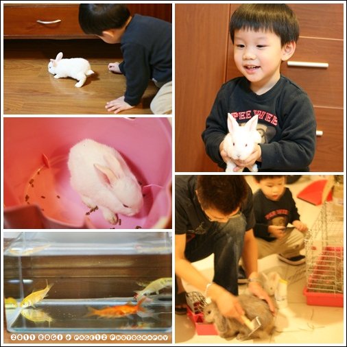 10月26日19:43 我兒歌的檔案有點跳針,小子聽一聽就說,麻麻你手機有一點壞掉,害我笑了,小子還是很皮,今天因為兔子被我修理好幾次講不聽,不過進步的是我煮飯他可以自己玩,但超怕他把兔子怎麼了,這隻好小好可愛哦,他今天白目又被momo咬了還好都沒傷口,mo超會吃又超激動的,昨天把小白放進籠子裡,發現mo發情了
